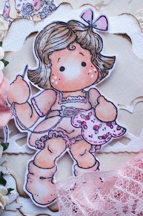 De mini-Tilda heeft Petra gekleurd met copic markers en flexmarkers.